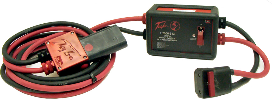 The Tesla™ Cobra Power Aviation DC Cable Assembly is equipped with a high current switchable control. A hermetically sealed toggle switch, along with a protective switch guard, allows the safe transfer of up to 3000 peak amps — no more arcing or fusing. When active, a status LED illuminates to let the user know power is present.