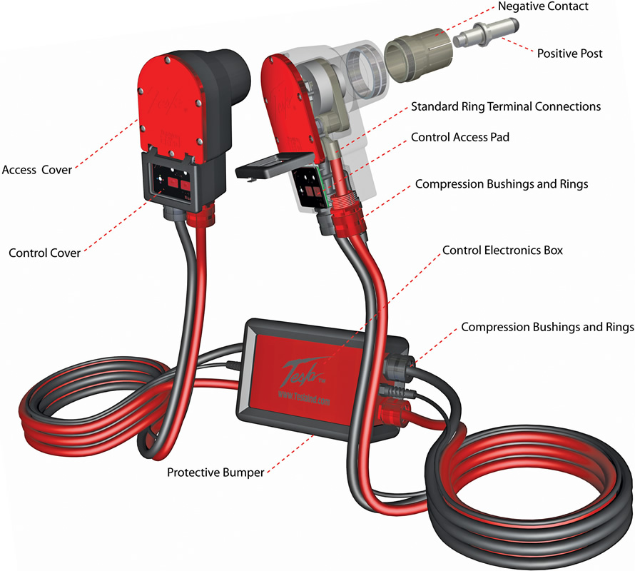 Incorporating state-of-the-art electronic control and monitoring circuitry, the Cobra™ Smart NATO Slave Cable can provide safe and efficient power transfer of up to 3000 peak amps — no more damage or injury to equipment, plugs and personnel.
