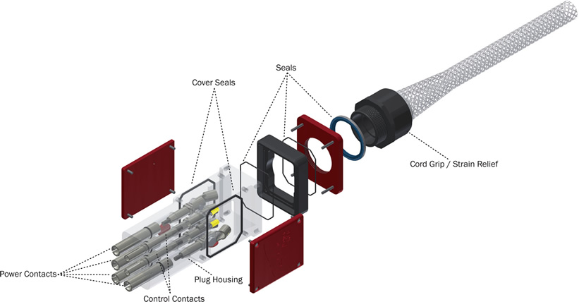 This 6-pole female aviation plug is intended for 400 Hz aircraft applications. These connectors provide fast and reliable connections from GPU to Aircraft. The Strain Relief Cord Grip prevent cable pullout at the point of termination due to tension, vibration, flexure or motion.