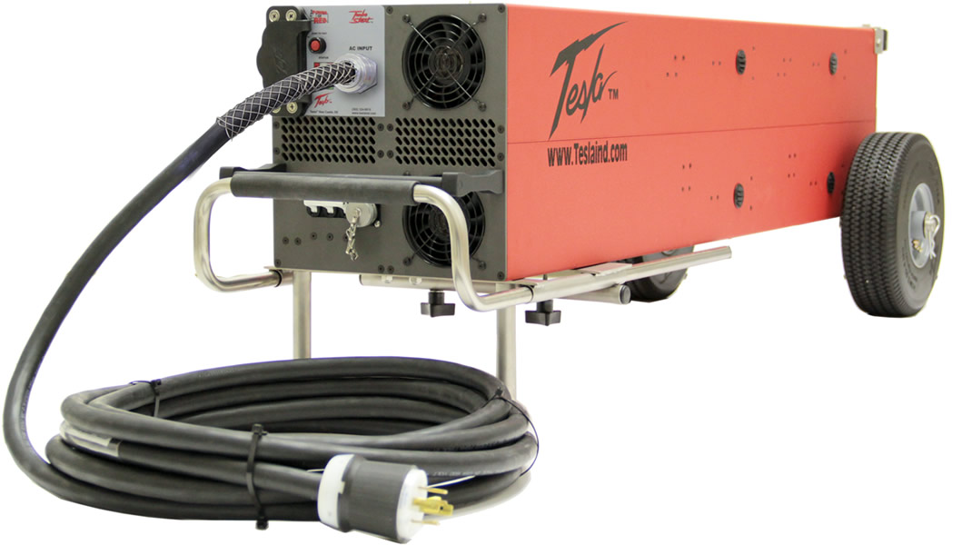 | AC Input: | Operates and charges from three phase 200-260 Vac 50/60 Hz 20 amps @ 208 Vac Requires 30 amp service (contact Tesla™ Industries for receptacle information) |